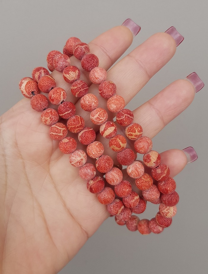 - Tràng hạt San Hô đỏ 108 hạt 8mm mộc với dạng tự nhiên