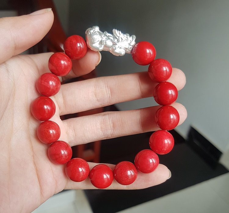 – Vòng tay san hô kết hợp với trang phục truyền thống khi đi lễ hội, đền chùa sẽ tạo thành bộ đôi hoàn hảo.