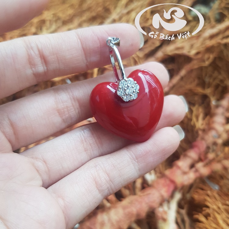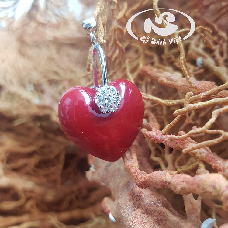 ♥ Mặt dây chuyền san hô đỏ trái tim mix bạc ♥