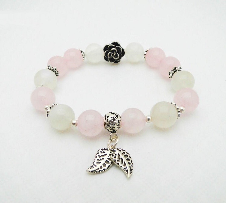 Sự kết hợp hài hòa giữa thạch anh trắng với charm bạc tạo nên dáng thanh tao cho người đeo mà vẫn không kém phần nổi bật.