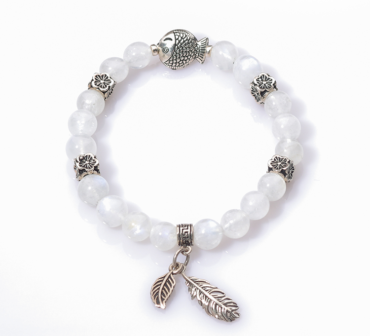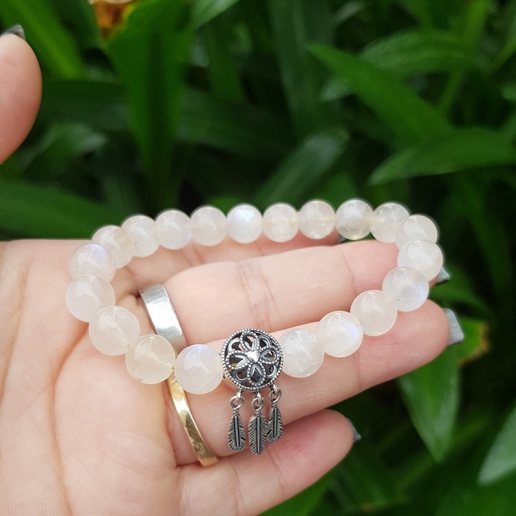 ♥ Vòng tay đá mặt trăng mix charm bạc ♥