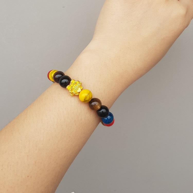 Với màu sắc và hoa văn rất đa dạng của từng hạt san hô, chiếc vòng Vòng San hô đa sắc 10mm mix charm sen vàng 24k luôn tập trung mọi ánh nhìn của những người xung quanh. Với những bạn thích “màu mè” một chút, chiếc vòng chắc sẽ là món trang sức ưa dùng mỗi khi ra phố.