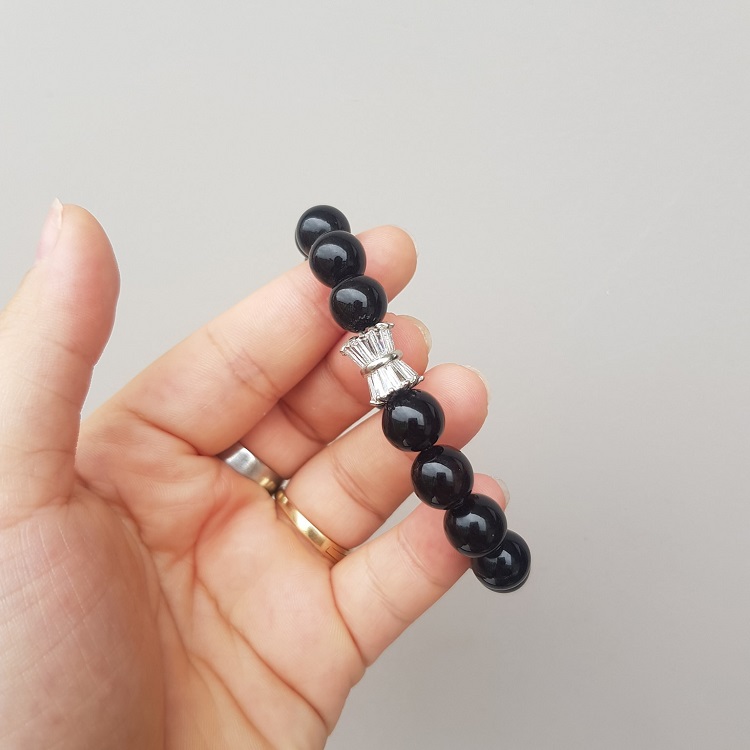 Hình ảnh vòng tay San Hô Đen Mix Charm Bạc kim cương: