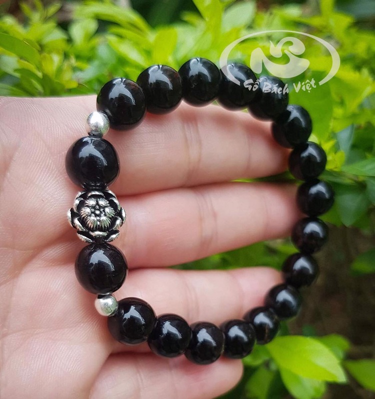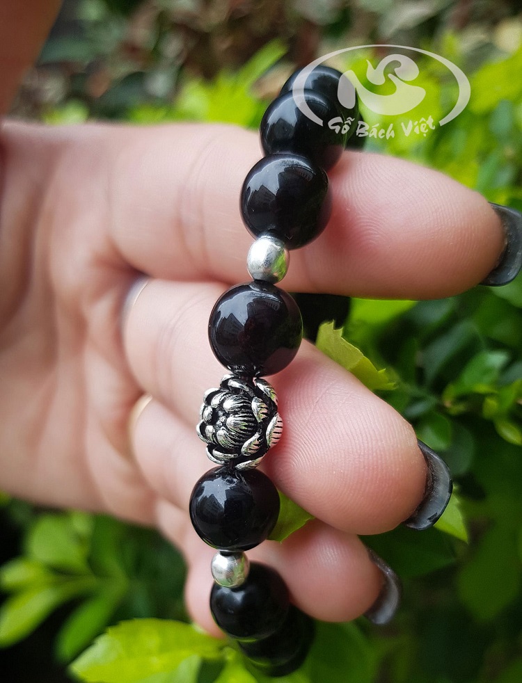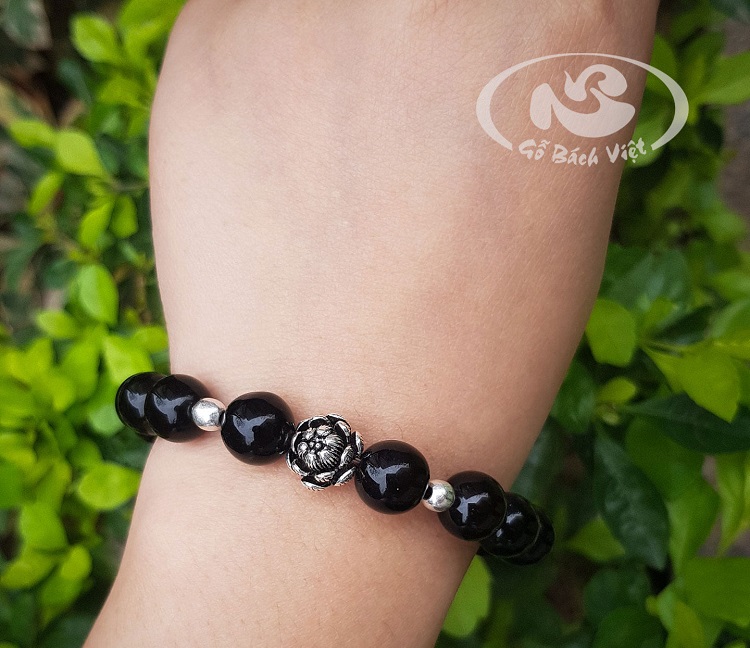 Hình ảnh vòng tay San Hô Đen Mix Charm Bạc bông sen: