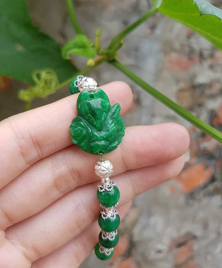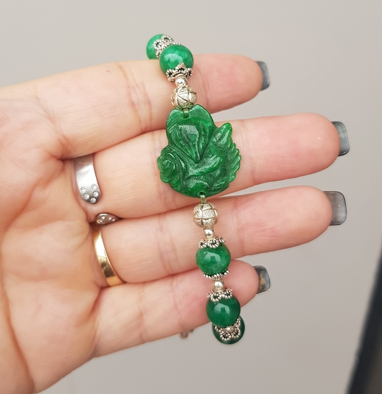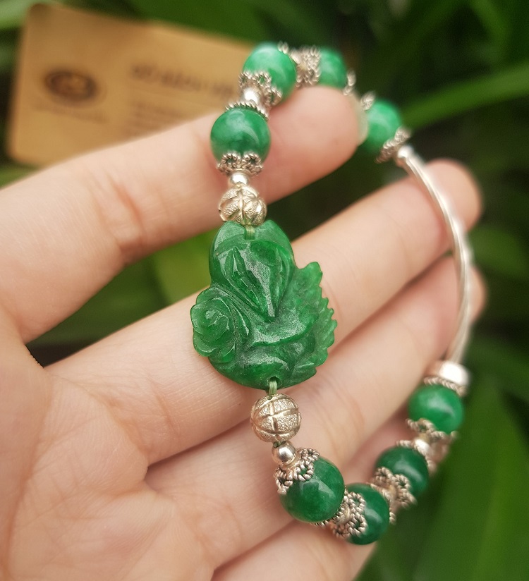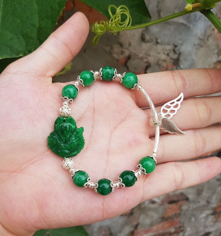 Vòng tay cẩm thạch hồ ly mix charm bạc