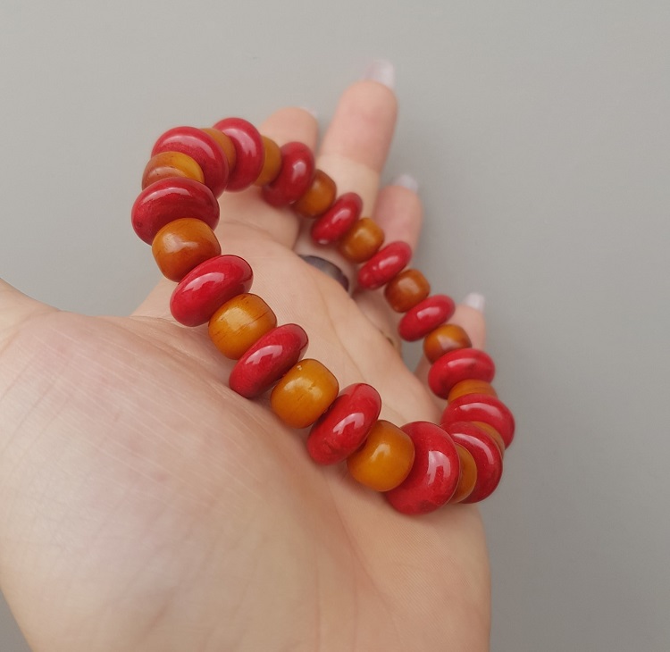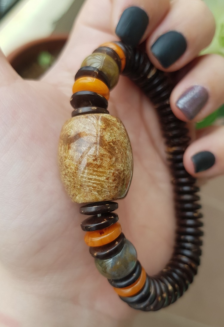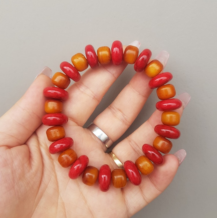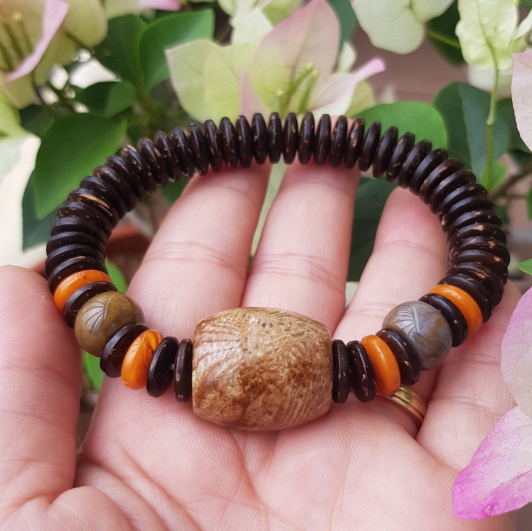 ♥ Vòng tay san hô hóa thạch lu thống mix hạt dẹt ♥
