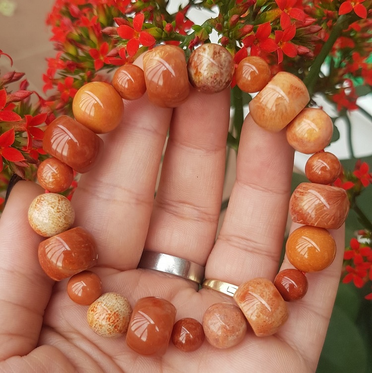 San hô hóa thạch là loại vật chất khá quý hiếm và khó khai thác. Giá trị của nó gì thế cũng cao hơn so với đá san hô thường. Với sản phẩm Vòng tay san hô hóa thạch mix hạt lu thống, khách hàng phải thật cẩn thật để không bị mua phải hàng giả, kém chất lượng.