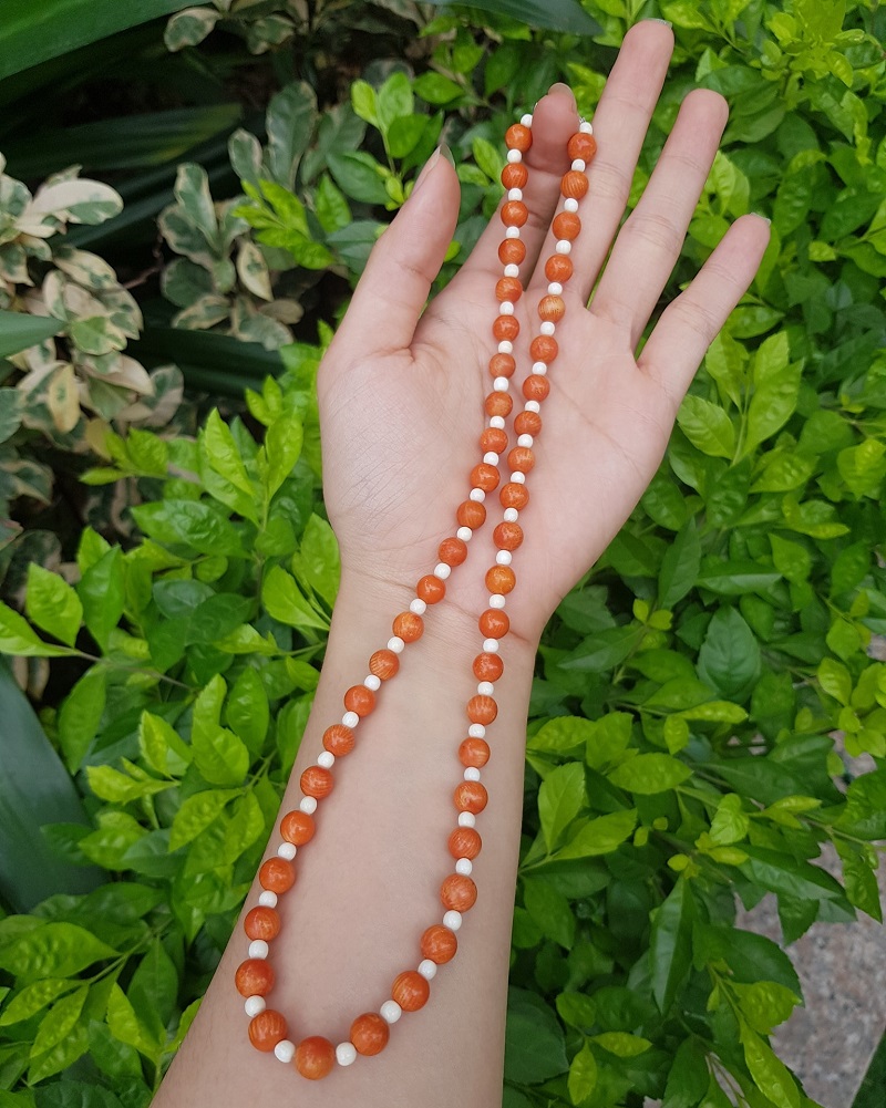 ♥ Tràng 108 hạt sò hóa thạch Mix san hô đỏ ♥