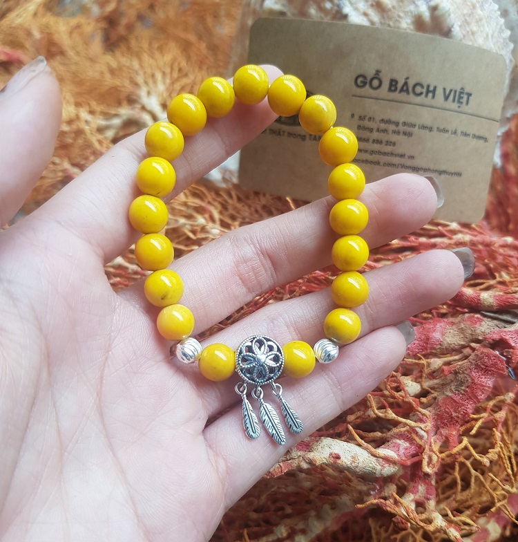 Dưới đây là sản phẩm vòng tay san hô vàng mix charm bạc với hiểu dáng hiện đại vô cùng phù hợp với giới trẻ. Đặc biệt những người có mệnh hợp với màu vàng, các tác dụng của vòng càng trở nên mạnh mẽ hơn.