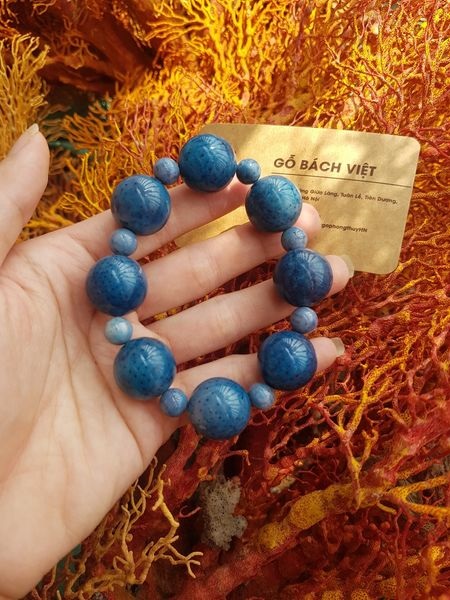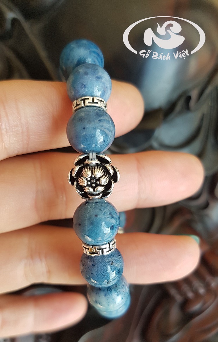 Một kiệt tác của đại dương: Vòng san hô xanh mix charm bạc hoa sen độc đáo, sang trọng.