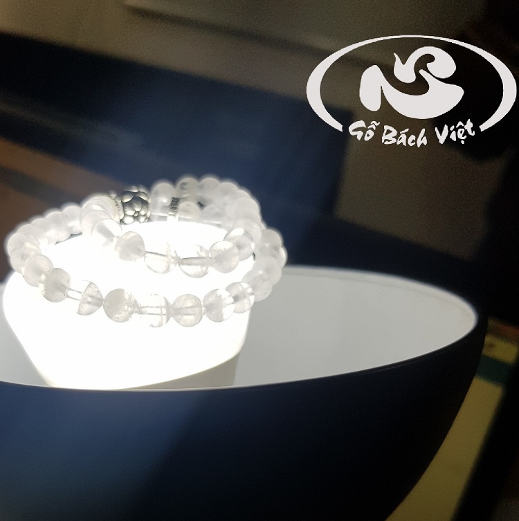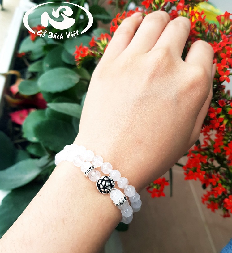 ♥ Vòng tay thạch anh ưu linh trắng mix hoa bạc ♥
